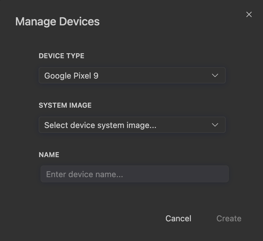 The system image is the Android system image or iOS runtime running on the created device. In order for system images to appear in the Radon IDE, they first must be installed in Xcode or Android Studio, respectively. For more information, see guide to Simulator System Images.